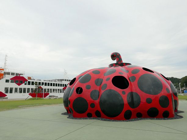藝術家草間彌生著名的南瓜系列創作就位於港邊