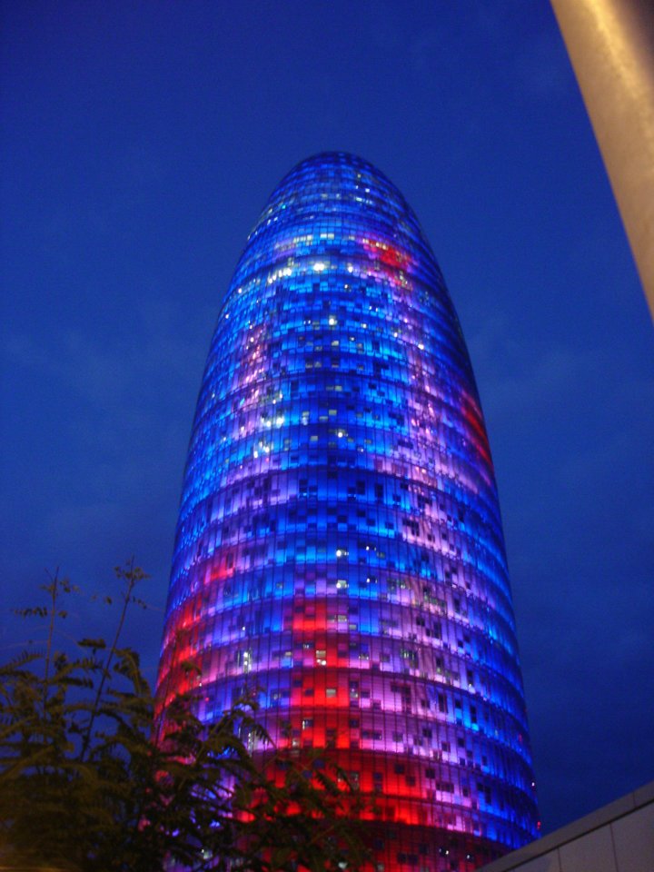 阿格巴塔外表看來像顆榴彈,是以巴塞隆納市郊一處宗教聖地蒙賽拉山的湧泉水柱形狀為創意發想。但是真正讓這座三十八層的大樓成為眾所矚目焦點的是它的照明設施:四千五百盞LED照明燈讓它在夜間閃耀著藍紅相間的顏色:紅色是加泰隆尼亞地區與巴塞隆納傳統象徵顏色,藍色則因為它是自來水公司的辦公室,但同時也讓人聯想起巴塞隆納身為港都的意象。依照不同的需求,這座高樓也能展現其它的顏色。自從正式開幕以來,它儼然已經成為巴塞隆納市的新地標,但當時在台灣的旅遊書與網站上仍然少有人提及。自從在國外旅遊網站看到相關介紹後,我就決定要趁在巴塞隆納時去看看。於是有天晚間我邀一位在民宿結識,同樣是到西班牙自助旅遊的台灣女孩去那裏拍照。