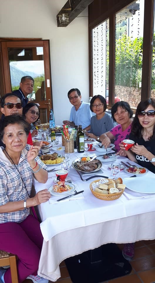 去年暑假因緣際會我到北義Trento 特倫托家庭當華語家教,這個家庭剛好經營餐廳/民宿,我在臉書社團推薦這家餐廳/民宿,並歡迎來找我玩,很多時候文章po在網路上,像在大海丟出瓶中信,有人撿到看到,也不一定會行動救援,後來有一群長輩,八個人、兩輛車不辭千里特地繞到山上鄉間的餐廳找我。