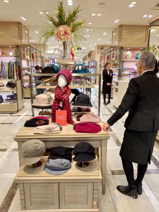 日本的百貨公司特別的地方,就是針對較高齡者的時尚商品頗多,尤其是帽子圍巾等配件。而在這些針對熟齡長輩的時尚產品專櫃裡,我就看到好幾位看來年近60歲左右,甚至應該已屆退休之齡的熟齡櫃姐。日本服務業之所以如此做,有多方面的考量:一方面客戶會對於被年齡相仿者服務感覺較親切安心,另一方面,面對日本社會快速地高齡少子化,業者難以找到新的年輕勞動力,因此讓原先服務的專櫃人員續任是最好的辦法。