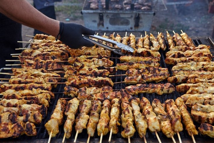 她舉起手,想起這裡的餐廳沒有白米飯,於是她轉要了一瓶啤酒,低頭望著盤子內的肉串,這一次選擇了看不出來是甚麼肉的長條肉串咬下一口,牛肉的香味讓她睜大了雙眸,接著另一種層次的羊肉味淡淡的飄過鼻間,不腥不羶,只有烤香的味道讓她大感驚奇。